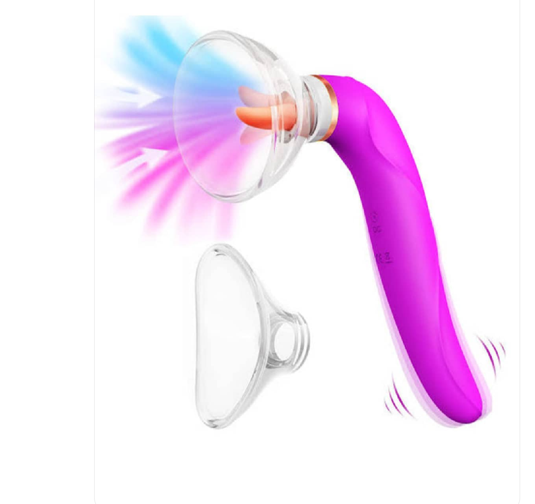 8 Speeds Purple Color Clitoral Sucking & Licking Vibrator with Tongue & 2 Cups ( Long Size Version ) , 2 different size cups, with vibrator.